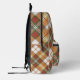 This customisable backpack features a chequered pattern of brown, red, white, and green colours.