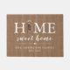 Personalised home sweet home door mat featuring a Brown Cockapoo dog, with your family name & year established, set on a brown burlap look background