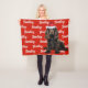 Your dog deserves a blanket of their own, especially with their name and breed on it. Fun throw to warm the season by the fireside or tossed over the sofa. A brown Cocker Spaniel in a Santa hat on a red background for the dog lover's holiday home decor, with your dog's name patterned across the dog blanket. Background colour is yours to change.