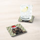 Fun coaster set for the person who loves their brown Cocker Spaniel. This one wears a red winter hat that is matched with the festive green plaid for the holiday season.