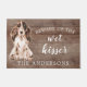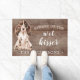 Funny beware of the wet kisser" Brown Cocker Spaniel Dog door mat set on a rustic faux background. Visit our shop to view a large assortment of dog breads