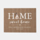 Personalised home sweet home door mat featuring a Brown Cocker Spaniel terrier dog, with your family name & year established, set on a brown burlap look background