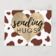 Brown Cow Pattern Gold Heart Sending Hugs Postcard