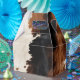 The cowhide leather details are simulated in the artwork. No actual cowhide or leather will be used in the making of this product.