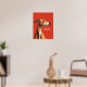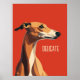 This is a minimalist poster design featuring a brown greyhound illustration against vivid red background and a customisable text "delicate".