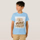 100% cotton so perfect for summer, It is a nicely designed t-shirt, the fabric is soft and the seams finished well, the body of the t shirt has no side seams. I bought a medium size for my two grandsons, aged 9 and 8 it will be slightly big on them but I would rather that than too small