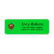 Brown dog with bone on green return address label