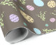 Brown wrapping paper for Easter. It has Easter eggs in pastel colours pink, blue, yellow and purple. Designed by Patricia Alvarez.