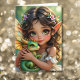 An adorable birthday card for a little girl with a little brown eyed elven fairy and a cute little baby dragon she is holding. Inside is a surprise coloring page and a sweet message you can personalize and add the birthday girl's name.