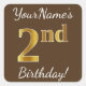 Brown, Faux Gold 2nd Birthday + Custom Name Square Sticker