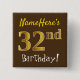 Brown, Faux Gold 32nd Birthday, With Custom Name 15 Cm Square Badge