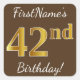 Brown, Faux Gold 42nd Birthday + Custom Name Square Sticker