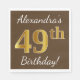 Brown, Faux Gold 49th Birthday + Custom Name Napkin