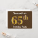 Brown, Faux Gold 65th Birthday Party; Custom Name Invitation