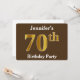 Brown, Faux Gold 70th Birthday Party; Custom Name Invitation
