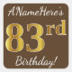 Brown, Faux Gold 83rd Birthday + Custom Name Square Sticker