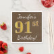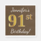 Brown, Faux Gold 91st Birthday + Custom Name Napkin