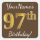 Brown, Faux Gold 97th Birthday + Custom Name Square Sticker