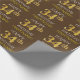 This wrapping paper design features a message like "HAPPY 34th BIRTHDAY", with the "34th" having a faux/imitation gold appearance. It also features a name that can be customised, and a brown coloured background. It could perhaps be used when wrapping gifts being given for somebody’s thirty fourth birthday. [~Z0000133]