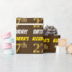 This wrapping paper design features a message like "ALEXANDRA’S 27th BIRTHDAY!", with the "27th" having a faux/imitation gold-like colour appearance, and with the name and "BIRTHDAY" in a fun, bold font. The name can be customised, and the background is coloured brown. Wrapping paper like this could perhaps be used when wrapping birthday gifts being given to somebody in celebration of their twenty seventh birthday. [~Z0000211]