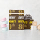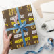 This wrapping paper design features a message like "FIRSTNAME’S 80th BIRTHDAY!", with the "80th" having a faux/imitation gold-like colour appearance, and with the name and "BIRTHDAY" in a fun, bold font. The name can be customised, and the background is coloured brown. Wrapping paper like this could perhaps be used when wrapping birthday gifts being given to somebody in celebration of their eightieth birthday. [~Z0000211]