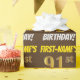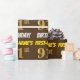 This wrapping paper design features a message like "FIRST-NAME’S 91st BIRTHDAY!", with the "91st" having a faux/imitation gold-like colour appearance, and with the name and "BIRTHDAY" in a fun, bold font. The name can be customised, and the background is coloured brown. Wrapping paper like this could perhaps be used when wrapping birthday gifts being given to somebody in celebration of their ninety first birthday. [~Z0000211]