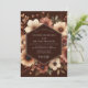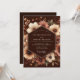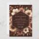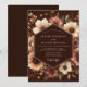 A rich tapestry of deep brown hues envelops this design, featuring a cascade of muted cream and burnt orange blossoms. The artistic arrangement evokes a sense of vintage charm and natural beauty, perfect for a romantic occasion.