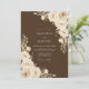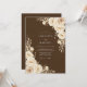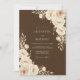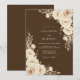 This elegant design features lush, creamy white blossoms and delicate greenery. A warm, earthy brown backdrop enhances the romantic floral arrangement, creating a sophisticated and timeless feel. Perfect for a classic and graceful union.