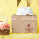 Destei's festive illustration of a brown colour gingerbread cookie with a Santa hat and a red bow. The cookie is framed by a round dotted circle shape and the background colour is light brown. There is also a personalizable text area that now reads: "Merry Christmas".