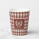 Custom Monogram Paper Cups, Brown Gingham Pattern Design - 6 colours.