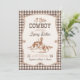 Saddle up for a sweet celebration! This gingham cowboy baby shower invite features western flair with a charming twist—easy to edit, download, and print or share digitally.