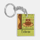 Brown Gold Green Chequerboard Coffee Cup Art Name Key Ring