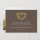 Gold heart monogram brown wedding photo save the date card. Edit this save the date card with your own names and wedding date on one side and your own photo on the reverse. Other matching items and colour options are available. Original design by Sarah Trett for www.mylittleedenweddings.com