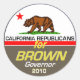 Jerry BROWN Governor 2010 California Republican for Brown Democrat Edmund G. Brown Barbara Boxer Carly Fiorina Tom Campbell Meg Whitman eBay Republican Sacramento Attorney General CA President Barack Obama Boulder Sticker