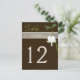 This olive green, brown, and ivory wedding table number post card has a white Bleeding Heart flower and a FAUX woodgrain band on it that matches the wedding invitation shown below. The text is customisable. ****You MUST change the number 12 to each number that you need, add it to your cart, and then come back and repeat the process with each number that you need. Everything will print as you see it on your monitor. I will not see your card, and Zazzle will NOT correct anything (typos, mis-alignment etc.). If you require any other matching items, please email your request to niteowlstudio@gmail.com.