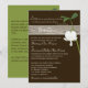 This simple modern brown, green, and ivory wedding invitation has a PRINTED faux wood grain band across the top that has the initials of the bride and groom on it, along with a single white bleeding heart flower and stem with leaves. There is also a love quotation in it that says: "Love does not consist of gazing at each other, but looking outward in the same direction". The text is fully customisable. It would work nicely for a rustic spring, summer, or autumn wedding or anniversary. ***PLEASE NOTE that if you change the font or size of the font, it may alter how your invitation prints. It will print the way you see it on your monitor, so if you have alignment issues, or sizing problems, please contact me for help. I will not see your invitation once you order it, and Zazzle will NOT edit anything (typos, alignment, etc.). If you require assistance or would like any other matching items, please email your request to niteowlstudio@gmail.com.