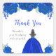 This birthday party sticker features faux glitter royal blue floral flowers and a beautiful princess with brown hair and an elegant dress. This is perfect for a birthday party.