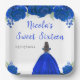 This sweet sixteen plate features faux glitter royal blue floral flowers and a beautiful princess with brown hair and an elegant dress. This is perfect for a sweet sixteen birthday party.