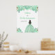 This Quinceanera welcome poster features faux glitter mint green floral flowers and a beautiful princess with brown hair and an elegant dress. This is perfect for a Quinceanera birthday party.