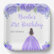 Brown Hair Princess Purple Floral Birthday Party Paper Plate