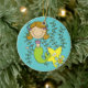 A brown haired smiling mermaid and yellow starfish swim among the seaweed, a design that's cute and colourful for girls who love the ocean and mermaids! Mermaid T-shirts, bodysuits, bibs, blankets, burp cloths, cards, stickers, bags, mugs, key chains, pillows, wall clocks, and lots of other mermaid gear!