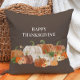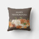 Brown Happy Thanksgiving Orange White Pumpkins Cushion