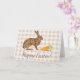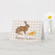 Brown Hare And Carrots Beige Gingham Happy Easter Card