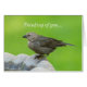 Thinking of you card featuring a female brown-headed cowbird sits on the edge of a bird feeder.