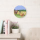 This kitchen clock features my design of a lovely brown chicken strutting in the fields, with a jaunty cockerel running towards her, perfect for bringing a country feel into your kitchen.