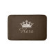Brown bathroom mat, with graphics of a tan, brown, and white Fleur di Lys crown.  Tan script text reads Hers, and can be personalised if you prefer.  Makes a great gift idea for her.  Comes in three sizes.  Matching His mat is available.