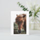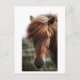 This postcard features a close-up portrait photo of a brown horse in a field.