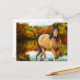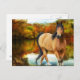 brown horse, flowers,tree postcard
