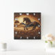 Brown Horse Galloping Across Golden Fields Square Wall Clock