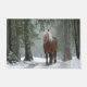 Brown Horse in a Winter Forest with Snow Falling Doormat